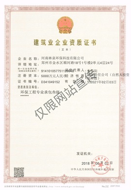 資質(zhì)證書 河南林泉環(huán)保科技有限公司是一家國家高新技術(shù)企業(yè)。公司主要從事環(huán)保工程專業(yè)承包(設(shè)計(jì)、施工、設(shè)備安裝、工藝調(diào)試)一條龍服務(wù),環(huán)境影響評價,清潔生產(chǎn)審計(jì),環(huán)保技術(shù)服務(wù),生態(tài)文明建設(shè)指導(dǎo)及規(guī)劃等工作。